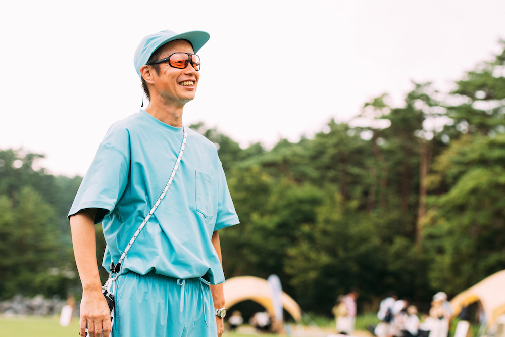 カリフォルニア発のサングラスブランド〈SUNSKI(サンスキー)〉ブースにて、「GOLDWIN INC.」の小林拓郎さんをキャッチ。会場で一際目を引いたパドルブルーのスリーピースセットアップは、謎多き全天候型ブランド〈ALWAYTH(オルウェイズ)〉、スイムウェアのフロントマン〈Speedo(スピード)〉、そして「BEAMS」のトリプルコラボレーションによるもの。水泳の技術を応用した撥水性と耐久性の高いアイテムは、水辺でなくても大活躍。また、〈SUNSKI〉のアイウェアについては、機能性、価格、環境配慮の三拍子が揃った外遊びのベストパートナー。掛けさせてもらった偏光レンズの視界のクリアさは圧巻でした!